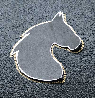 Step 1: Print out a picture of a horse or horseshoe. Using a small piece of tape under the picture, place it on the center of your plain notebook.