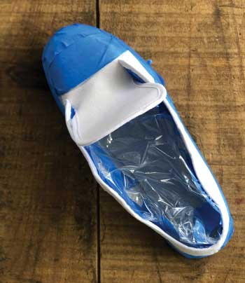 TIP: I would also recommend using some blue painter’s tape and plastic bags to cover the parts of the shoe you don’t want to be gold. (If you want the entire shoe to be gold, you won’t need these!)