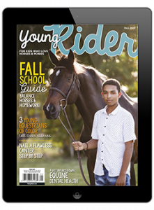 The Fall 2020 Digital Issue of Young Rider includes information on how to juggle school and horses, young riders of color, dealing with jealousy at the barn, conquering the 7 most frequent canter problems, improving your showmanship class, horse dental needs, and more (see the full contents above).